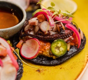 AGAVE’s menu features amazing Mexican food, excellent service, and delicious craft cocktails. One must-try dish is the hand-pressed homemade tortilla chips, which are so good you won’t be able to resist ordering more. Another standout dish is the deconstructed Elote, an explosion of flavor with a freshly made corn croquet containing all the ingredients of an Elote. And don’t forget to save room for dessert! The Tres Leches with Maracuya, a traditional Mexican fluffy cake with Maracuya drizzle, is sure to leave you wanting more.
