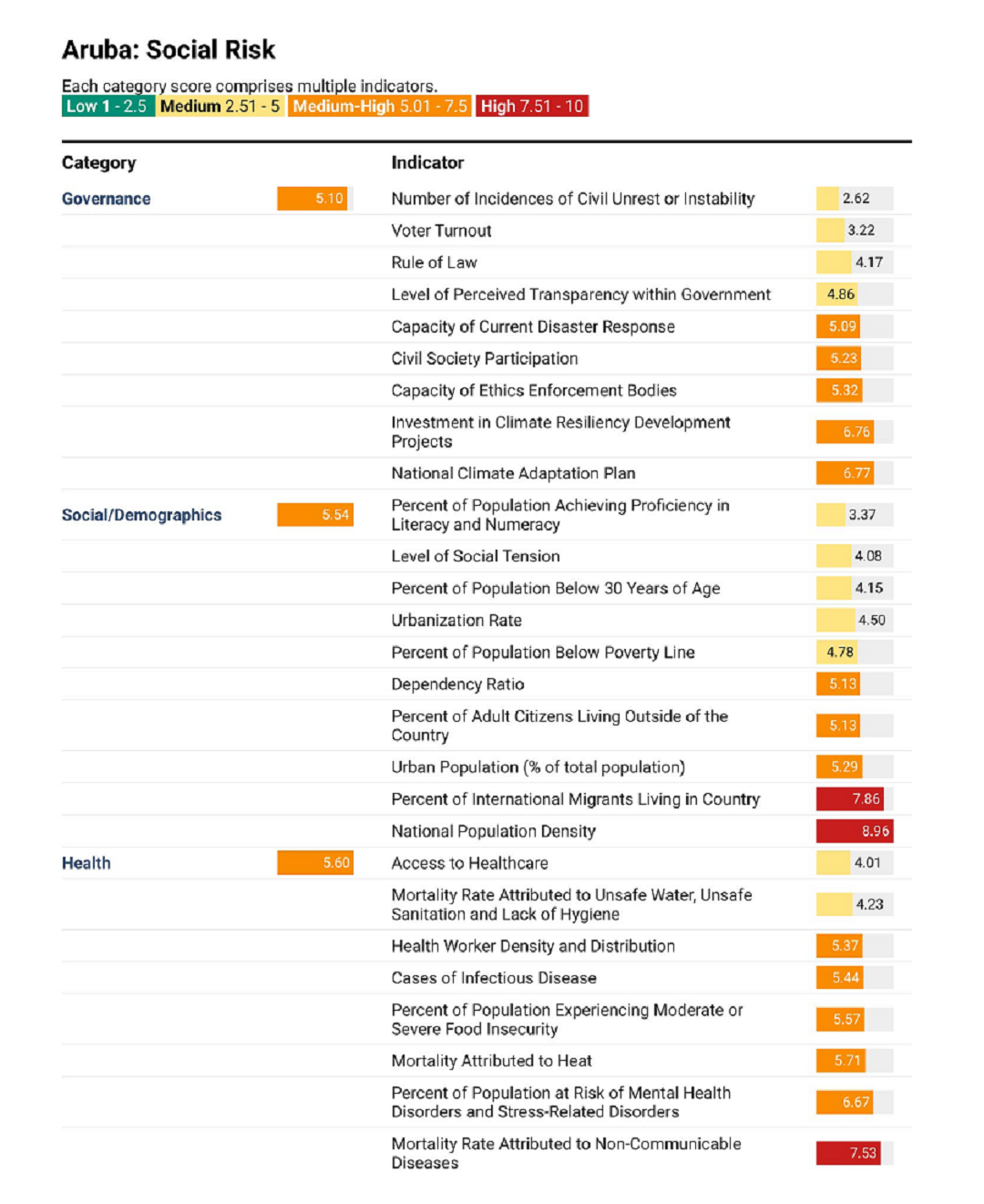 These vulnerabilities collectively shape how well Aruba can respond to climate disruptions, making Aruba social risk climate adaptation a matter of immediate national concern.