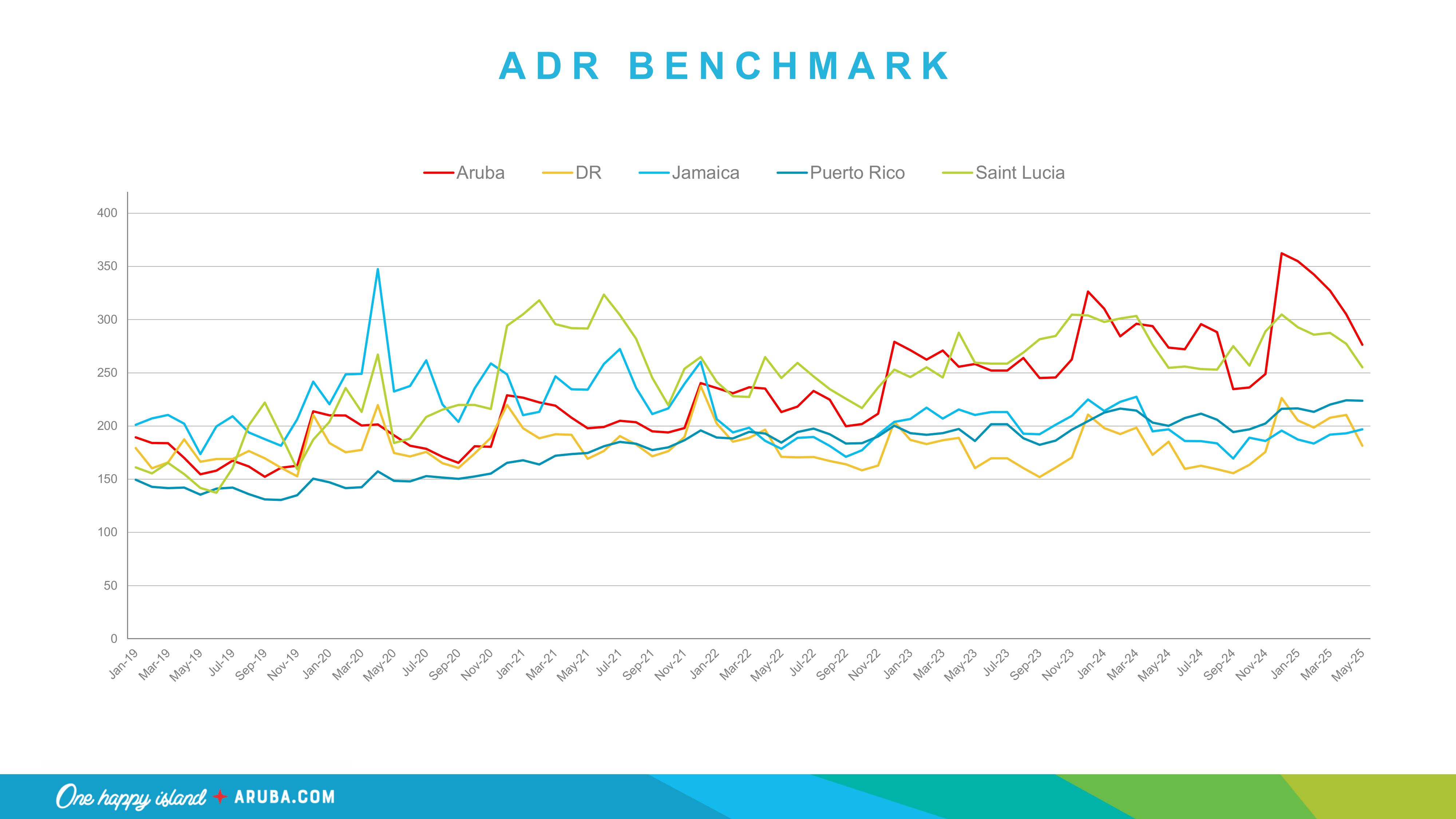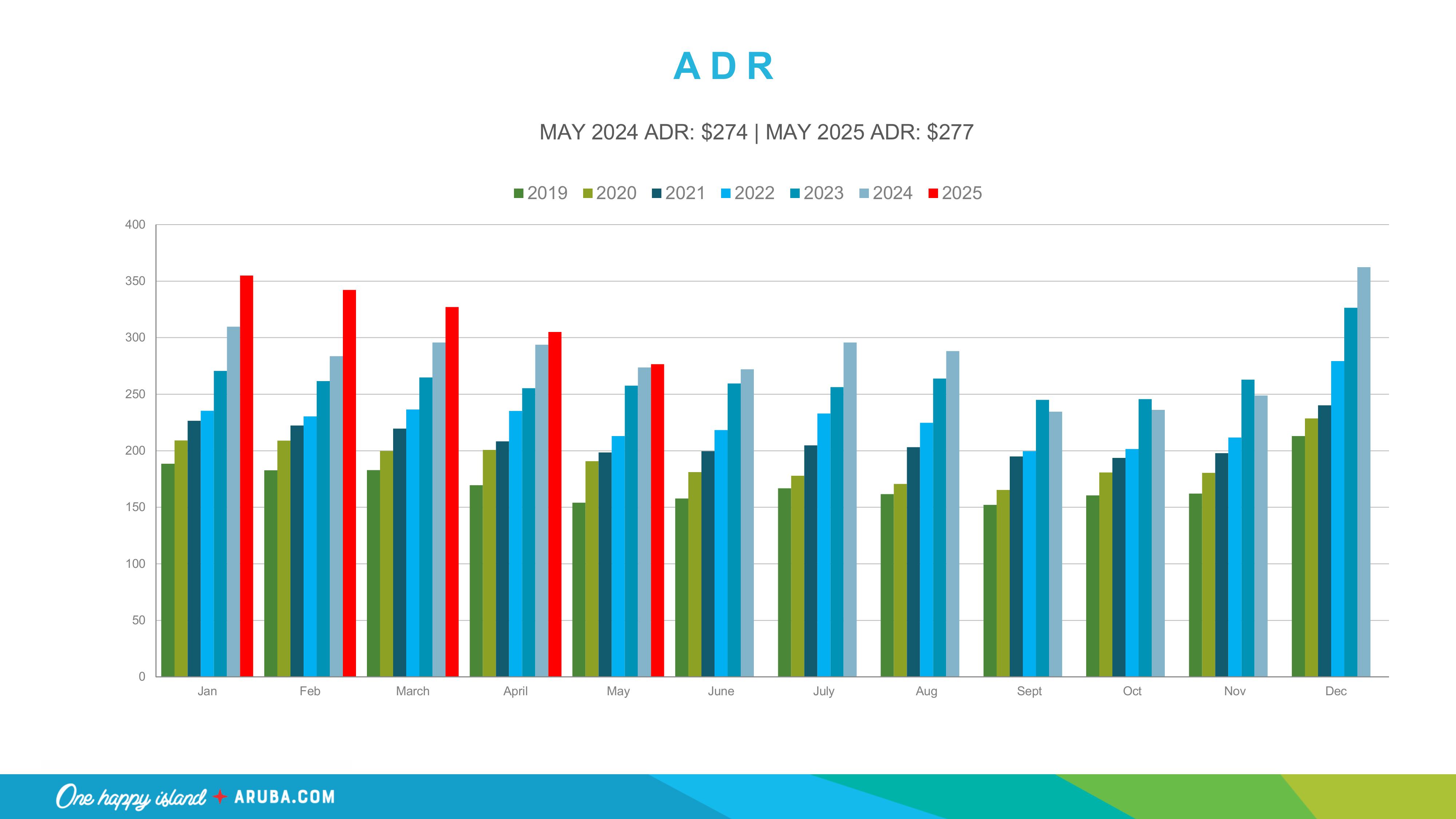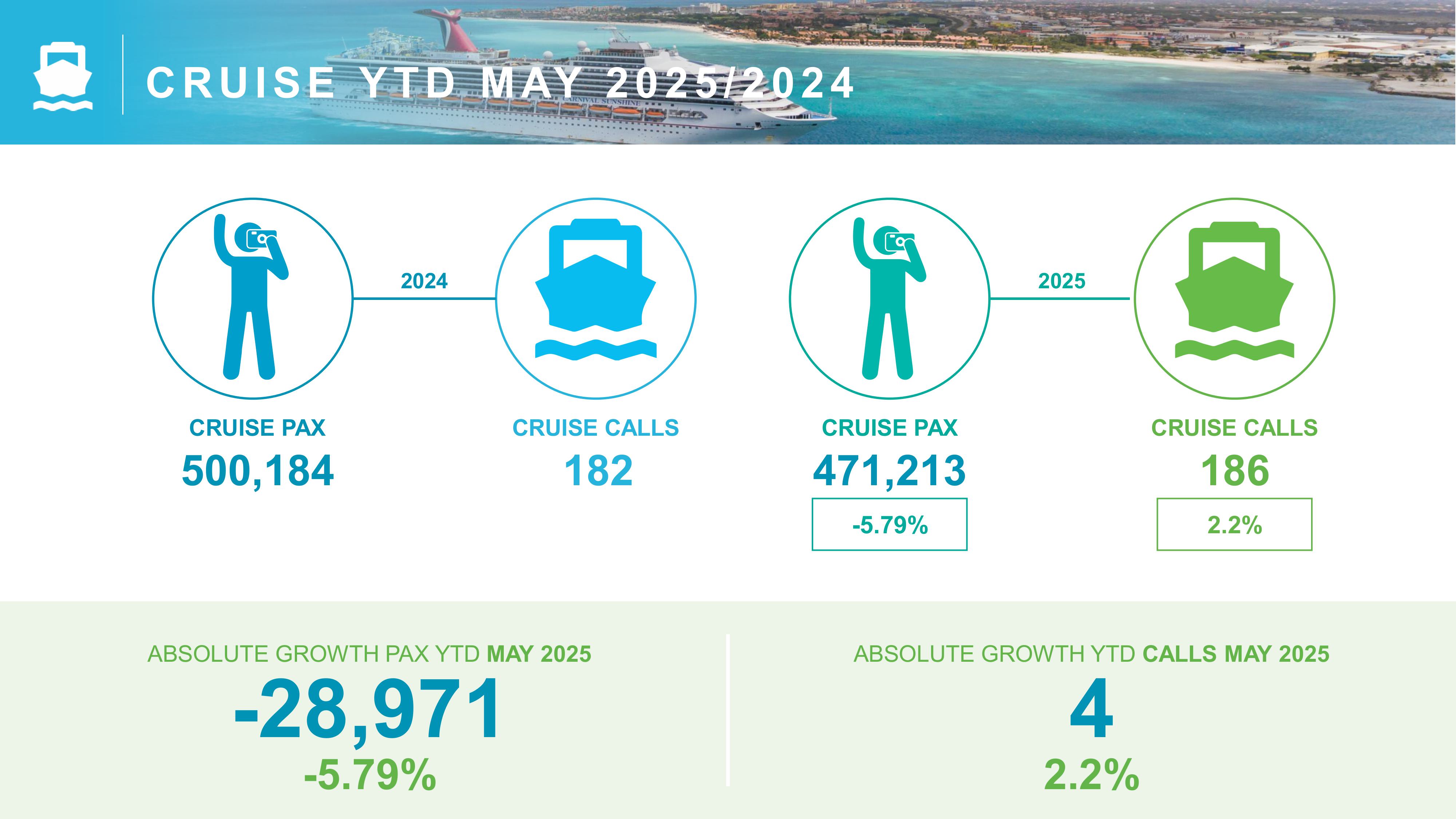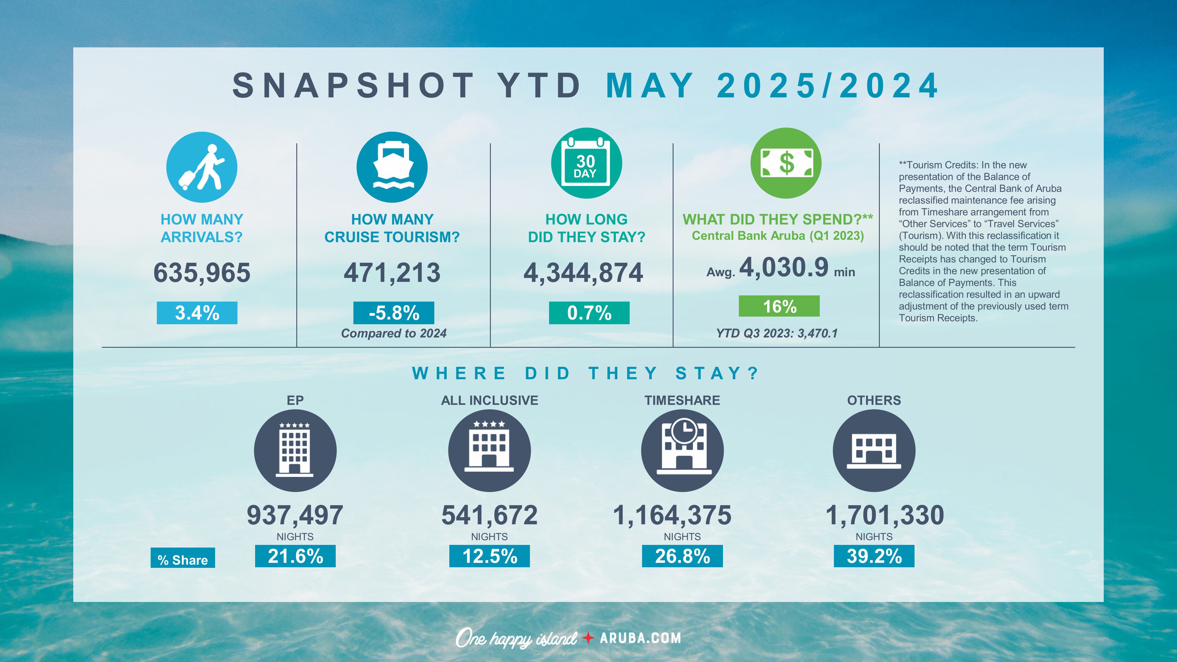 - Aruba welcomed nearly 21,000 more visitors YTD compared to 2024