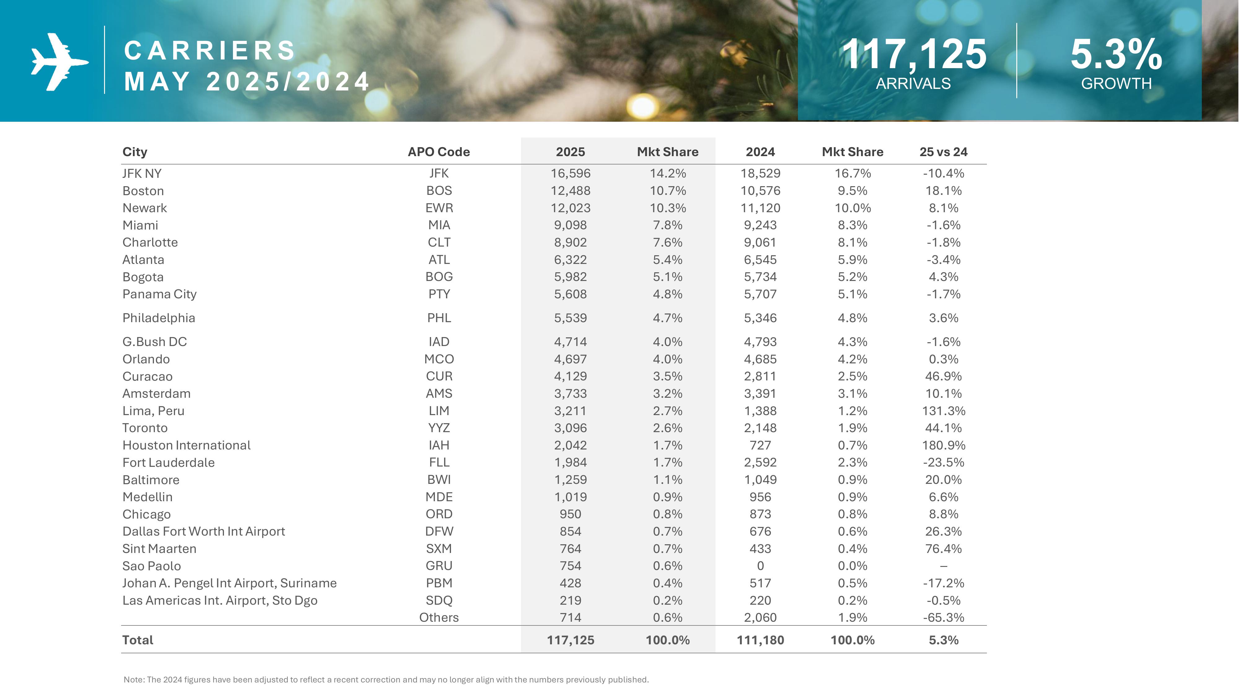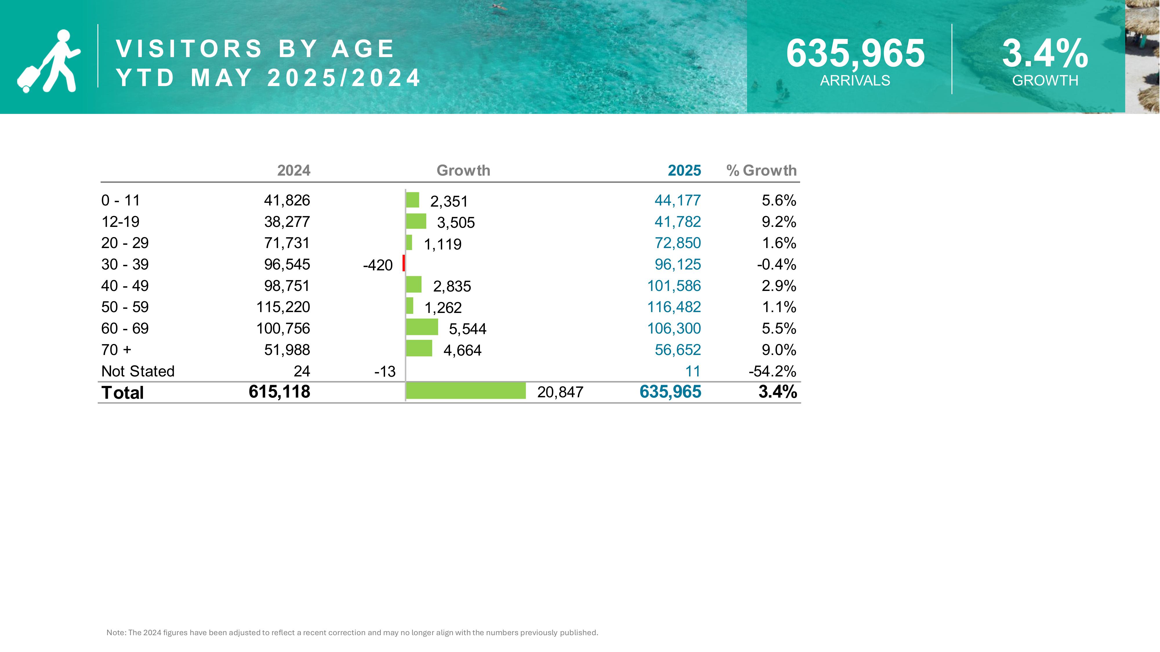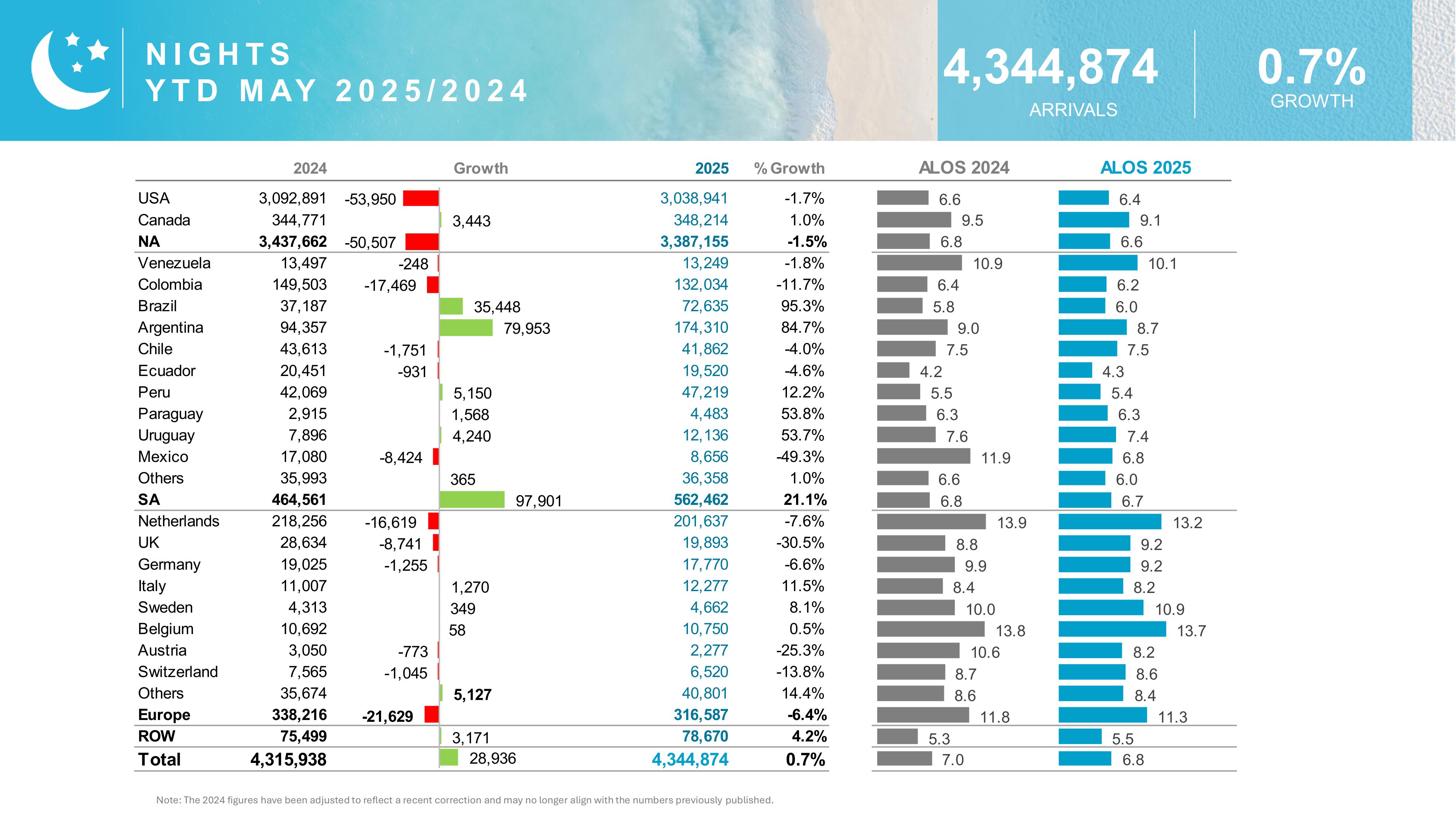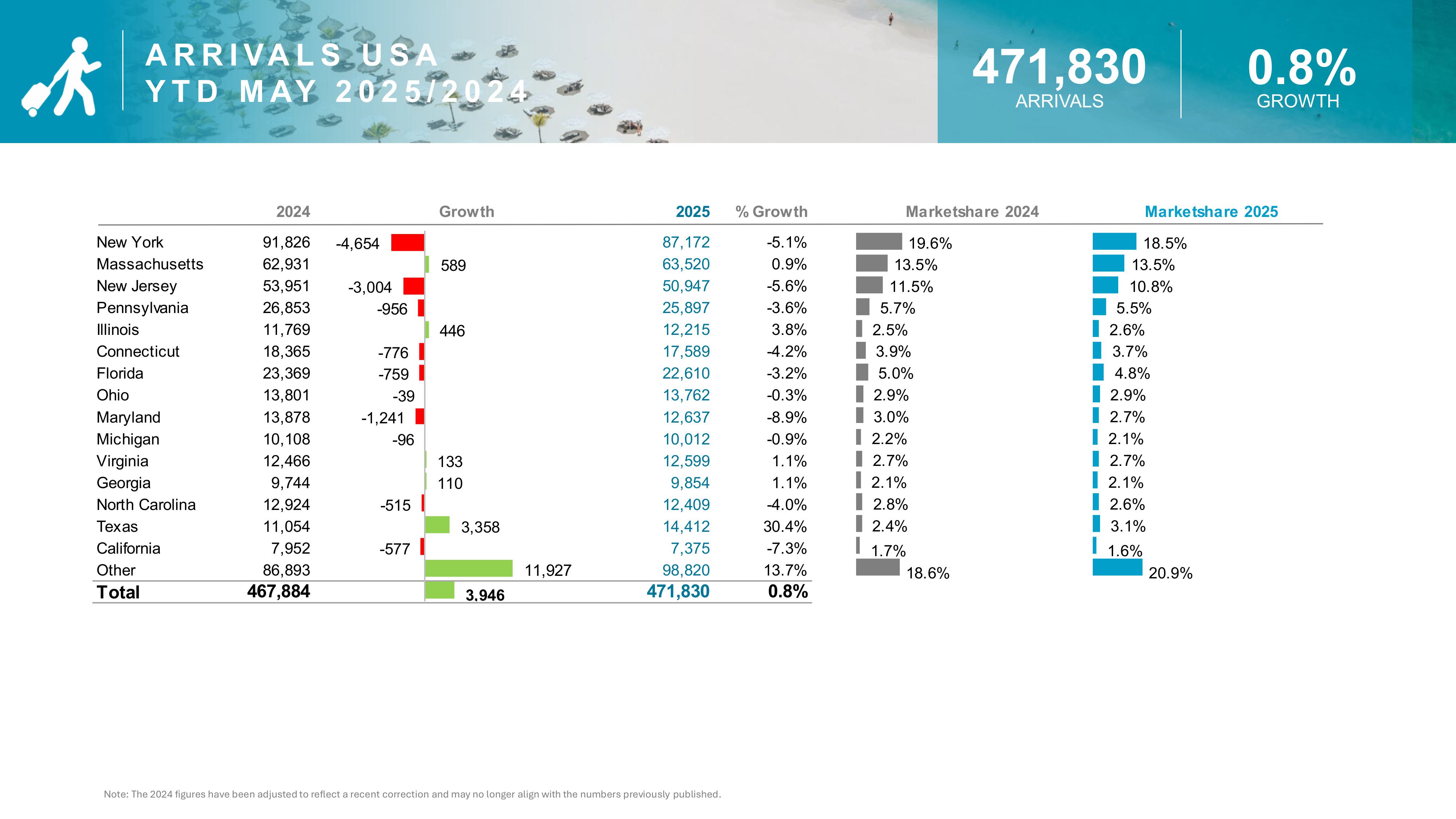 - Aruba welcomed nearly 21,000 more visitors YTD compared to 2024