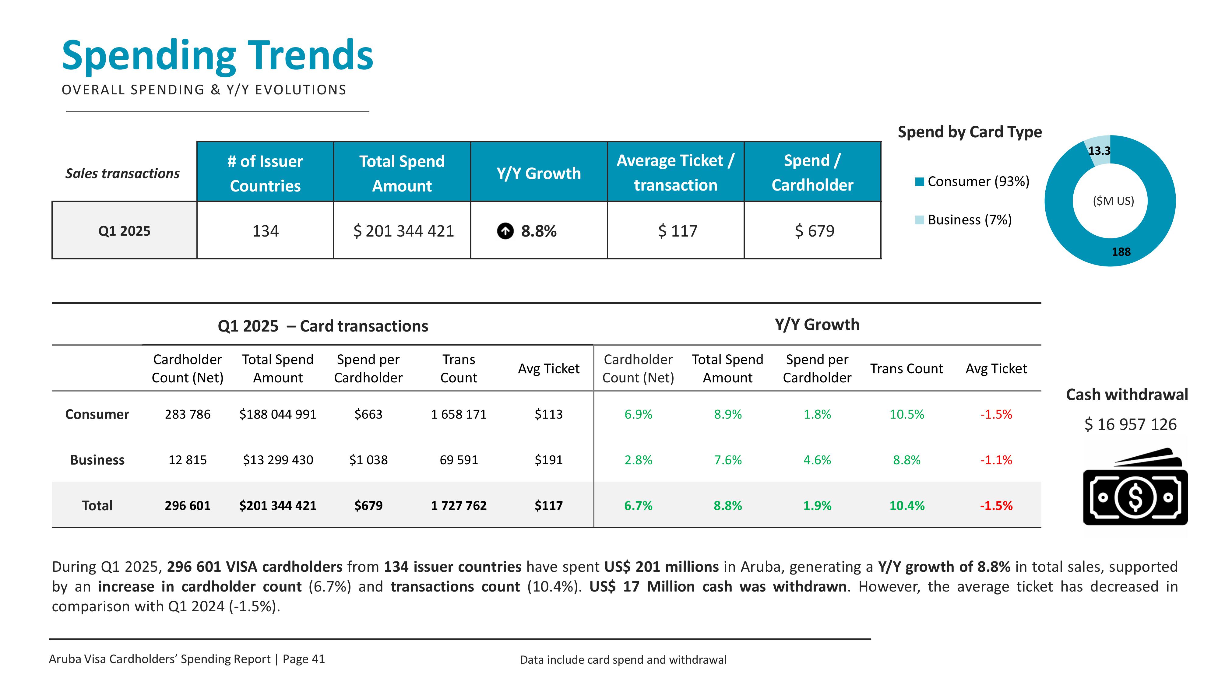 Visa cardholders spent over US$201 million in Aruba during Q1 2025—a strong 8.8% year-over-year increase.