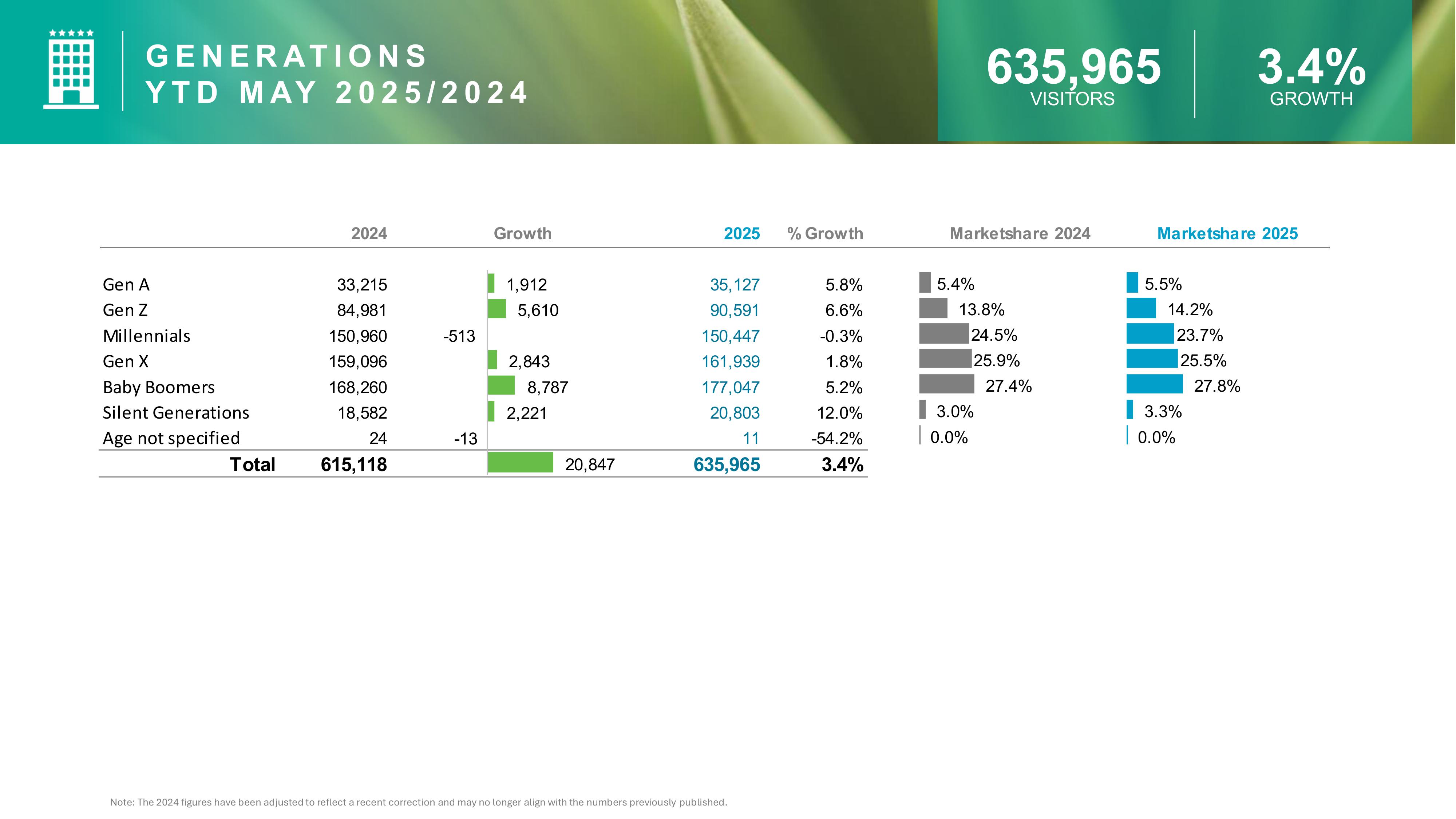 Boomers and Gen X remain the dominant visitor demographics, but younger generations are gaining ground: