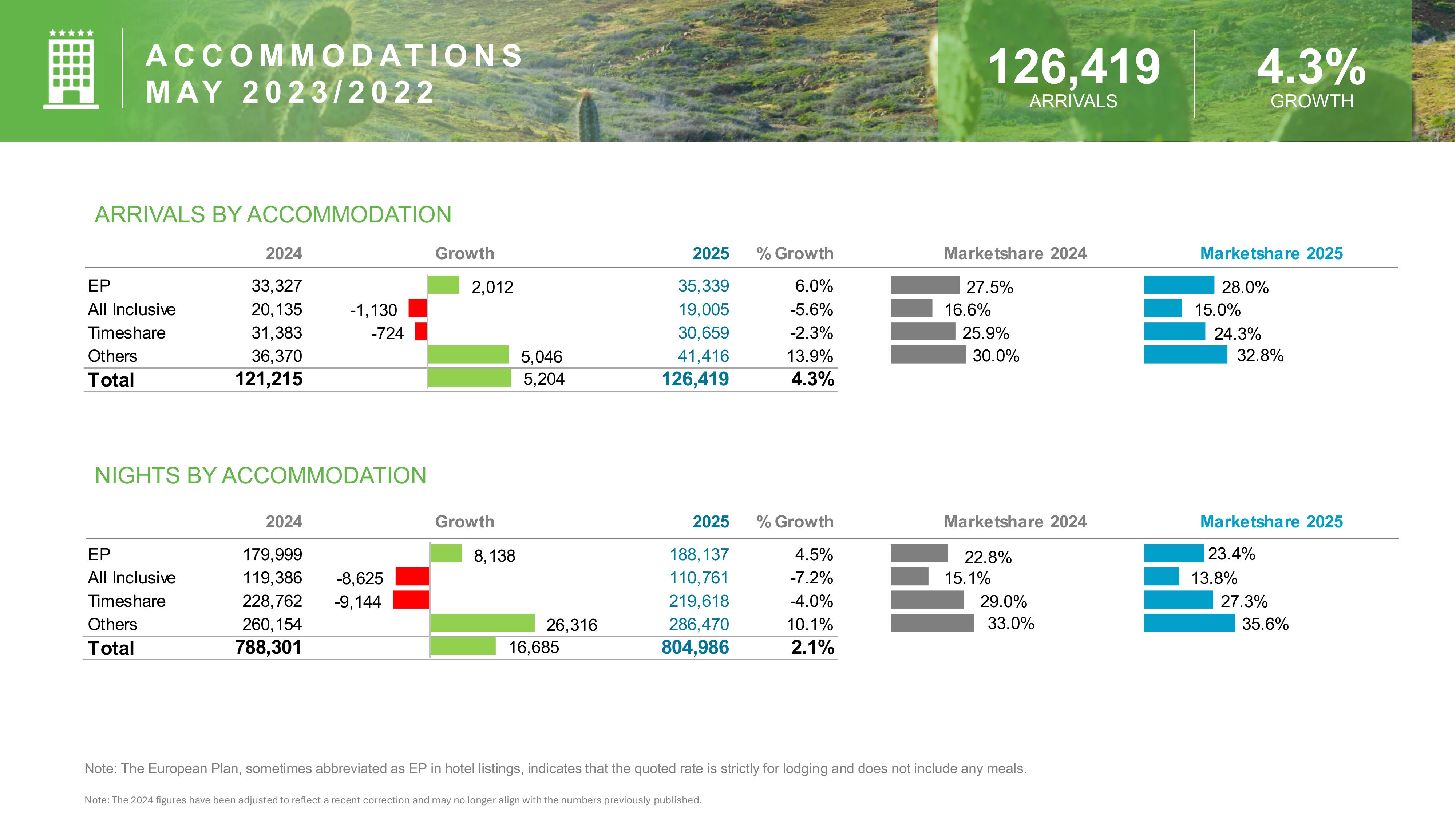 • Meanwhile, European Plan (EP) hotels experienced 4.5% growth
