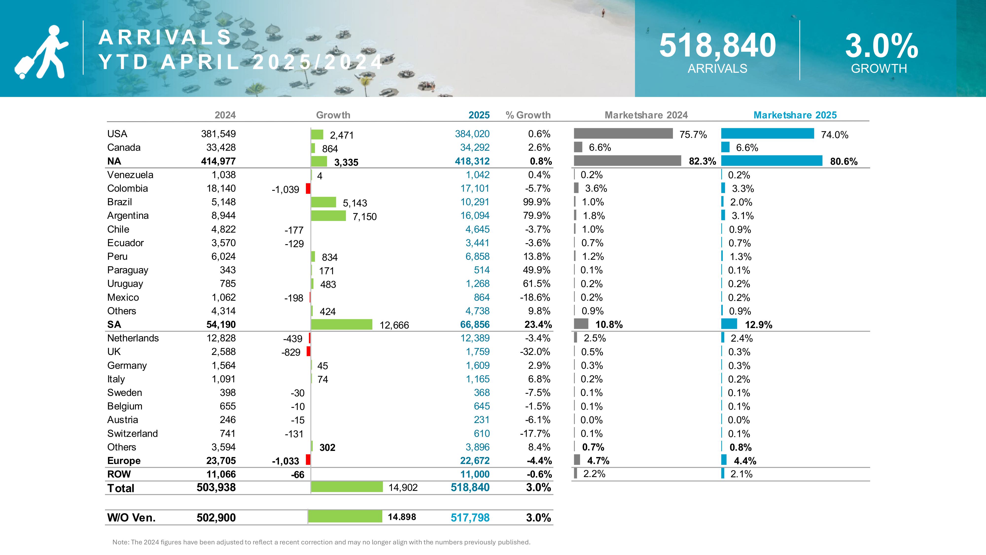 Aruba continues its upward trend in travel and tourism for 2025, with the latest data from the Aruba Tourism Authority (ATA) revealing a solid increase in visitor arrivals, overnight stays, and tourism-related spending for the month of April. The island’s performance, especially among visitors from North and South America, highlights the resilience and growing appeal of Aruba as a premier Caribbean destination.