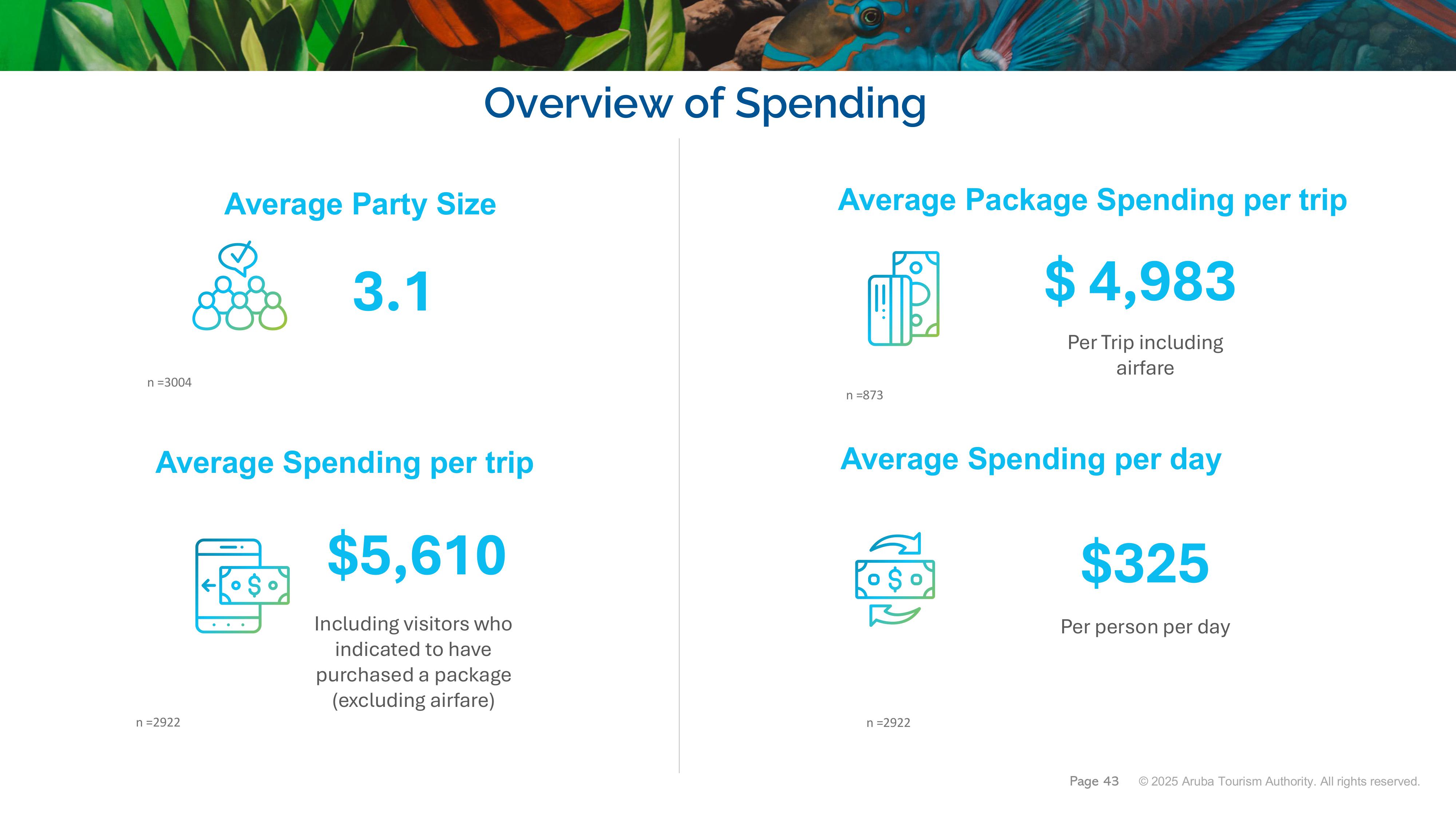The ATA’s latest airport survey, conducted with over 3,000 departing travelers, revealed an average spend of $325 per person per day. Notably: