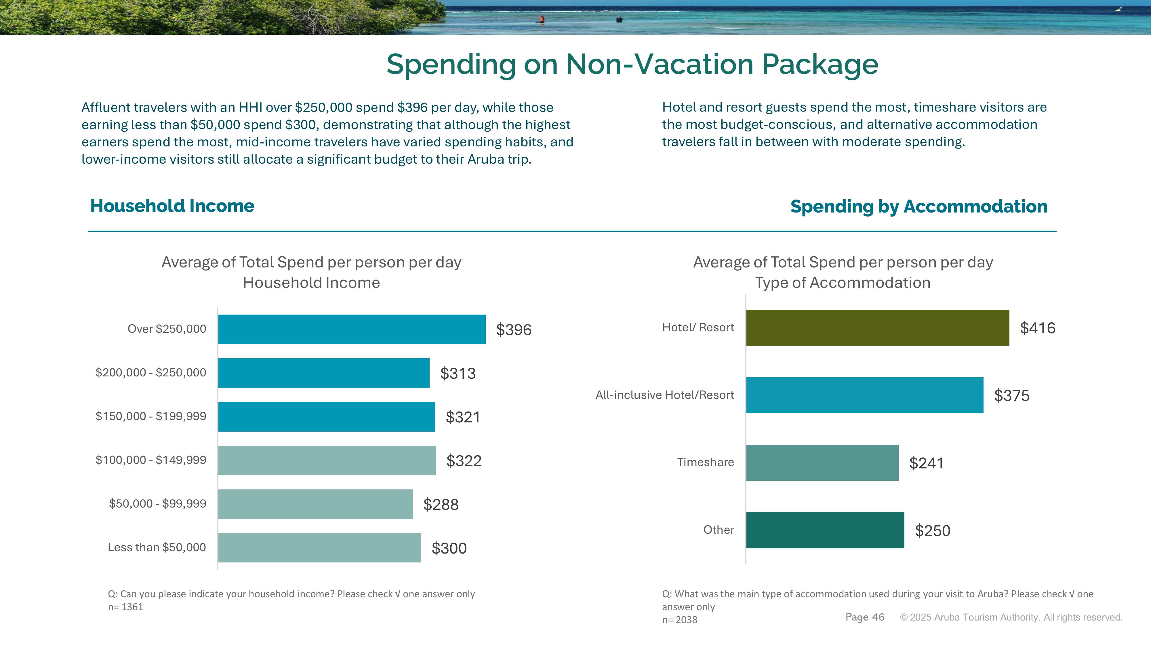 • Hotel and resort guests spend the most at $416/day