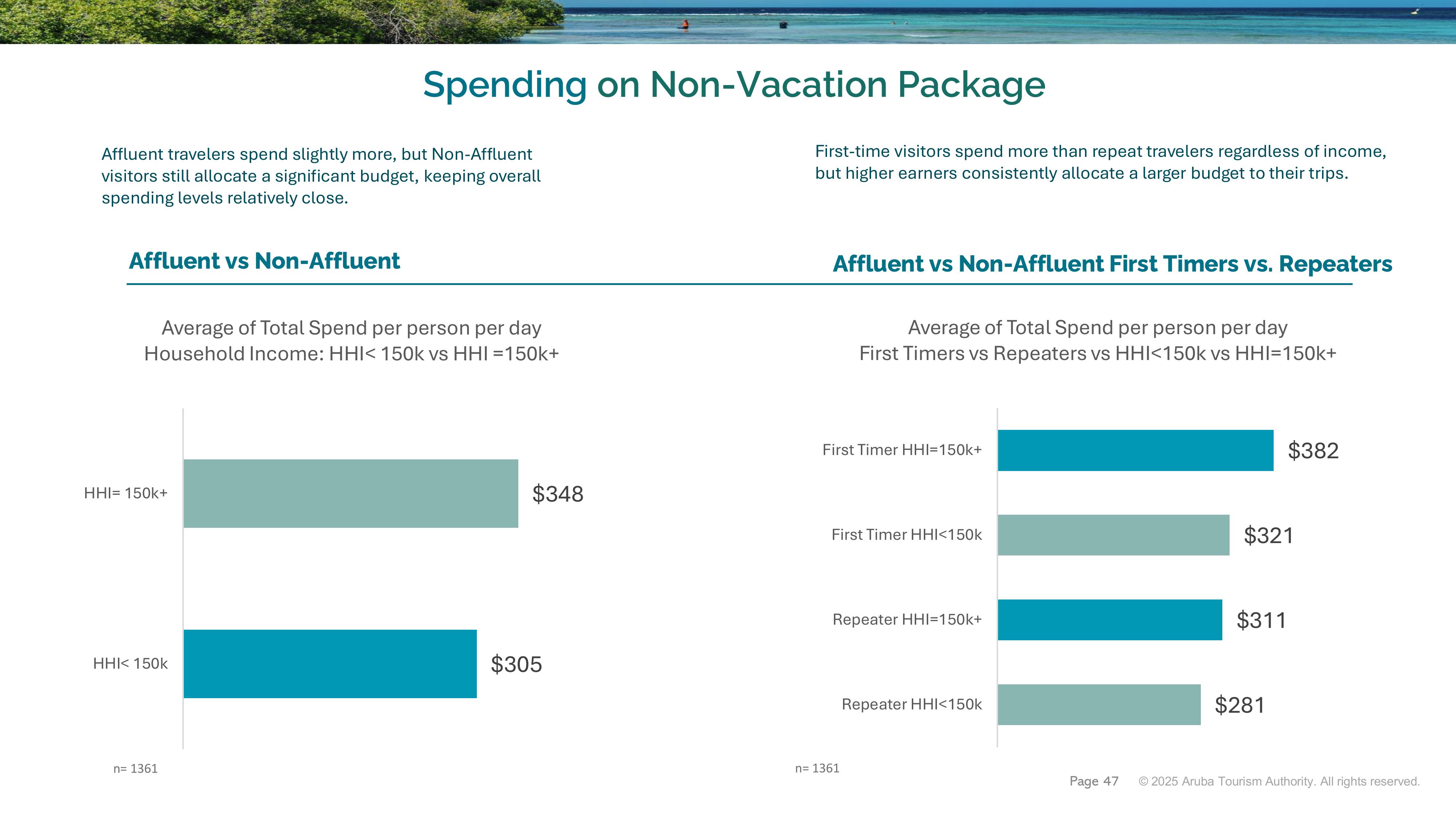 • Affluent travelers (HHI $150k+) spend significantly more than others