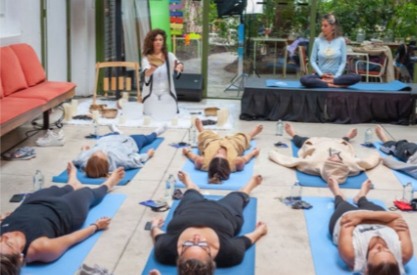 The day began with a gentle yoga session led by María Pucci, who traveled from Aruba to share her expertise and the island’s authentic wellness essence. Participants were then guided through an immersive sound journey led by Sol Wais, a pioneer of therapeutic sound work in Argentina. Her sound baths aimed to relax the body, harmonize the mind, and open the heart to a deeper connection.