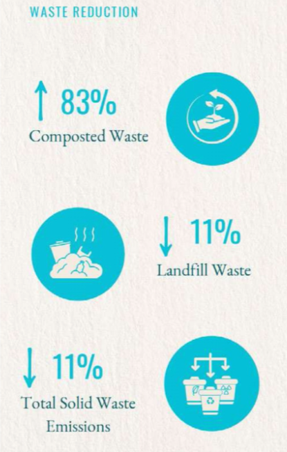 - Landfill waste reduction by 11%, demonstrating efficiency in waste management.