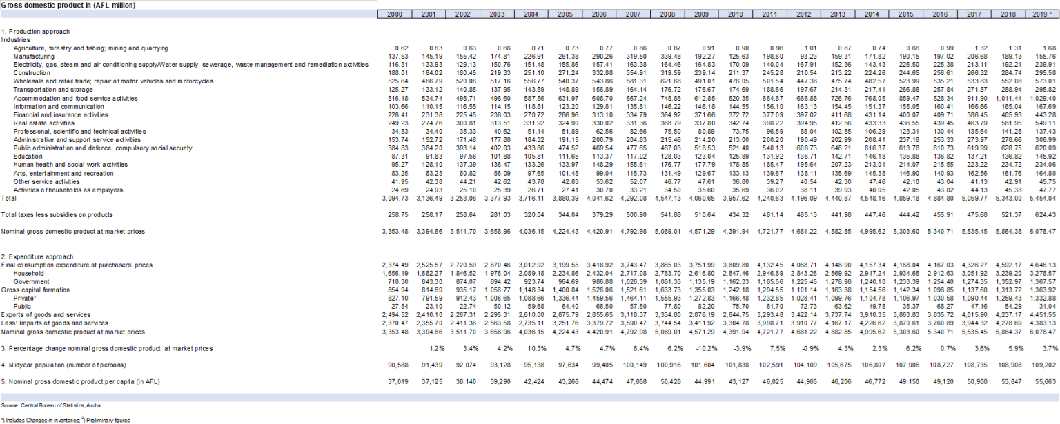 The GDP data series spanning from 2000 to 2019 serves as a valuable resource for understanding the economic landscape of Aruba. Released by the Central Bureau of Statistics, this data holds significant importance in assessing the country’s economic growth and developmental trajectory over the years.
