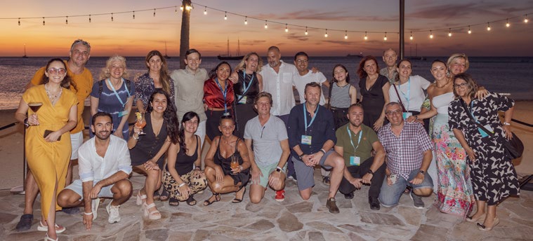 The Holiday Inn Resort Aruba hosted a Sunset Cocktail event during the Global Travel Conference week to honor its top partners from the USA, Europe, and Latin America. The evening commenced with a vibrant atmosphere at the Oceanside terrace, featuring a picture-perfect entrance and a wall of sparkling drinks to warmly welcome the invitees.