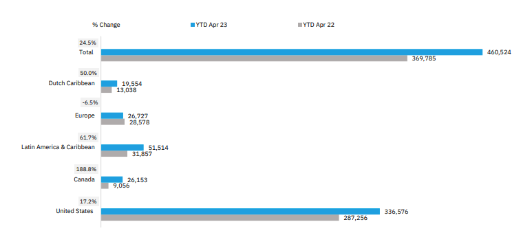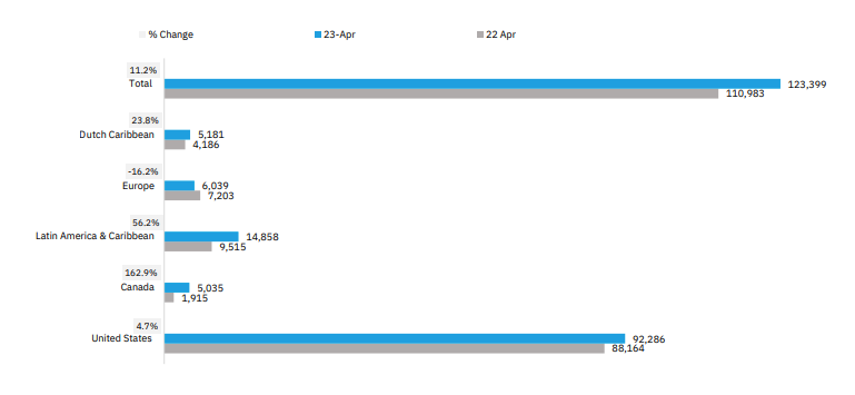 REVENUE GENERATING PASSENGERS (RGPs) BY REGION April 23 vs. 22