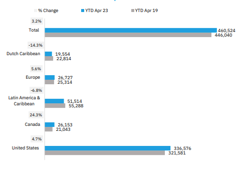 REVENUE GENERATING PASSENGERS (RGPs) BY REGION YTD April 23 vs. 19
