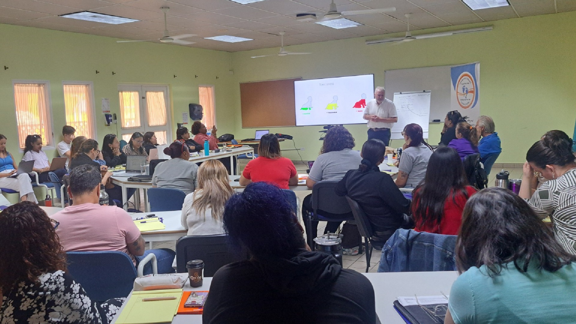 In Aruba, Dr. Moonen not only trained professionals but also engaged directly with parents, offering research-based answers to their most pressing questions.