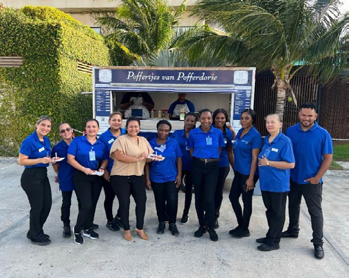 Team members at Radisson Blu Aruba were greeted with a delightful surprise recently when the Poffertjes van Pofferdorie Aruba truck rolled into the parking area. The truck offered employees plates of delicious poffertjes topped with options like strawberry, Nutella, powdered sugar, or Stroop. This treat served as a special thank-you for the team’s enthusiastic participation in the International Day of Happiness video, where they shared what brings them joy, reflecting the positive spirit at work.