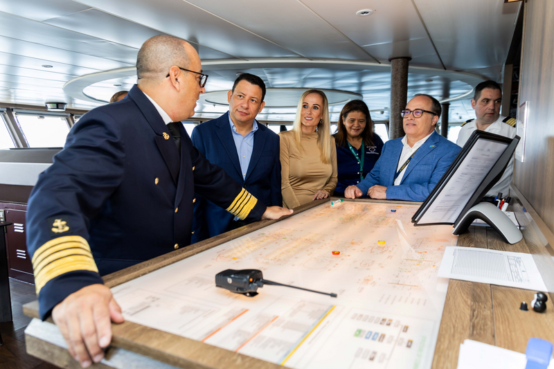 A plaque exchange ceremony took place on board the World Explorer to celebrate its first visit to Aruba. This maritime tradition symbolizes good intentions and cooperation between the ship and the port. Captain Adrian Medina and his crew welcomed key figures from Aruba, including Marc Figueroa, CEO of Aruba Ports Authority, Mario Arends, Chief Commercial Officer, and Monica Bos, Cruise Manager of Aruba Tourism Authority. Additionally, representatives from Port Agency Maduro & Sons attended the event.